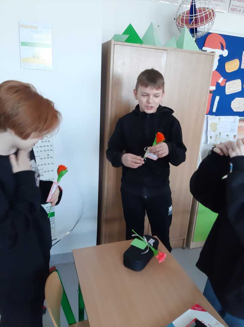 Jak co roku, w naszej szkole, obchodzony był Dzień Kobiet. Panowie zadbali o to, by każda kobieta dostała w tym dniu upominek. Padło wiele życzeń i uśmiechów. Przedstawiciele Samorządu Uczniowskiego wręczyli wszystkim uczennicom i pracownicom szkoły piękne, ręcznie wykonane róże.