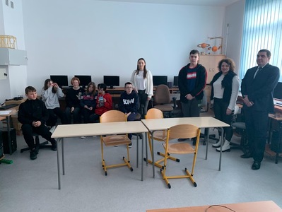 Koniec szkoły podstawowej dla naszych ósmoklasistów zbliża się wielkimi krokami. Nie każdy ma sprecyzowane plany na przyszłość. Pewne jest jednak, że wybór jest łatwiejszy, jeśli horyzonty są szerokie. Właśnie w tym celu, uczniów klas VII i VIII odwiedzili przedstawiciele Zespołu Szkół Techniczno-Motoryzacyjnych w Tomaszowie Lubelskim. Uczniowie oprócz tego, że poznali ofertę szkoły, dowiedzieli się, na czym polega różnica pomiędzy liceum, techniku i szkołą branżową. Poruszono temat wymagań edukacyjnych i możliwości, jakie dają na przyszłość konkretne kierunki nauki. Wyjaśnione zostały kwestie praktyk, stażów i stypendiów. Spotkanie odbyło się w przyjaznej atmosferze. Serdecznie dziękujemy przedsatwicielom Zespołu Szkół Techniczno-Motoryzacyjnych w Tomaszowie Lubelskim za pouczającą i ciekawą prezentację.
