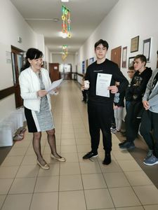 Dzisiaj podczas apelu odbyło się również podsumowanie konkursu "Budka lęgowa". Zadaniem uczestników konkursu było wykonanie budki lęgowej dla wybranej grupy ptaków zgodnie z wytycznymi. Wśród nagrodzonych znalazł się uczeń naszej szkoły Łukasz Ścirka, który zajął III miejsce. Dyplomy i upominki za udział otrzymały następujące osoby: Anita Bucior, Oskar Luchowski i Patryk Tryndoch. Opiekunem konkursu była Katarzyna Pawlik. Zwycięzcy gratulujemy, a pozostałym dziękujemy za udział w konkursie.