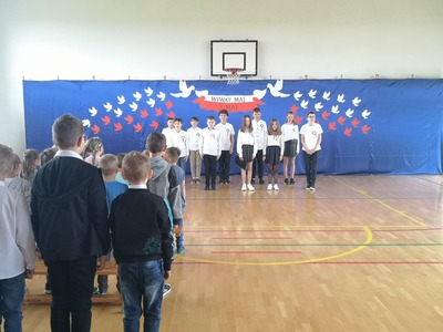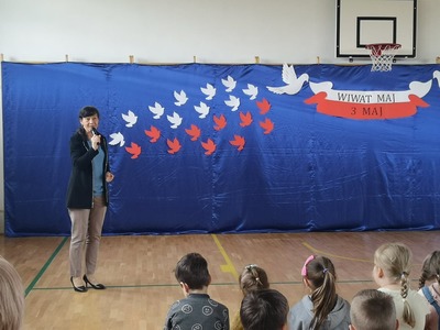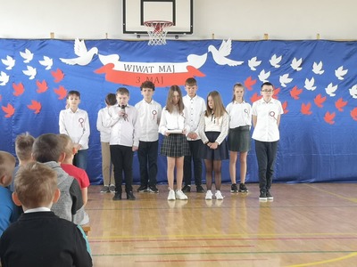 Z okazji Święta Narodowego Uchwalenia Konstytucji 3 Maja w naszej szkole odbył się uroczysty apel. Uczniowie pod kierunkiem Pań: Anny Gozdek i Iwony Krupy przygotowali patriotyczny montaż słowno - muzyczny. Pani Dyrektor Ewa Probola podziękowała za muzyczną lekcję historii oraz życzyła byśmy zawsze mogli cieszyć się wolną Ojczyzną.