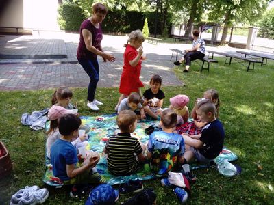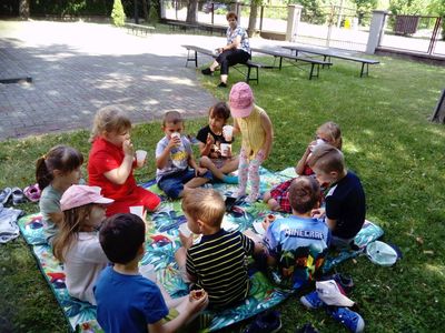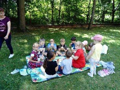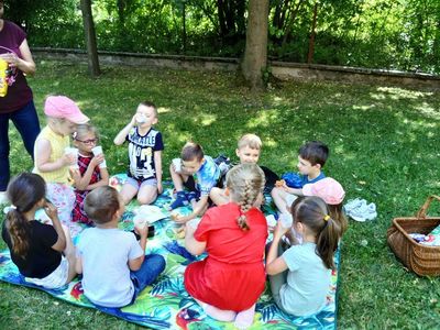 drodze powrotnej zbierały na łące kwiaty i zioła. Pełni radości i uśmiechu wróciły do przedszkola.