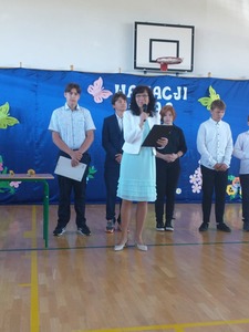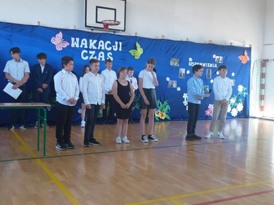 Uczniowie wyróżnieni oraz kończący klasę VIII odebrali dyplomy i nagrody ufundowane przez Radę Rodziców i Urząd Gminy.
