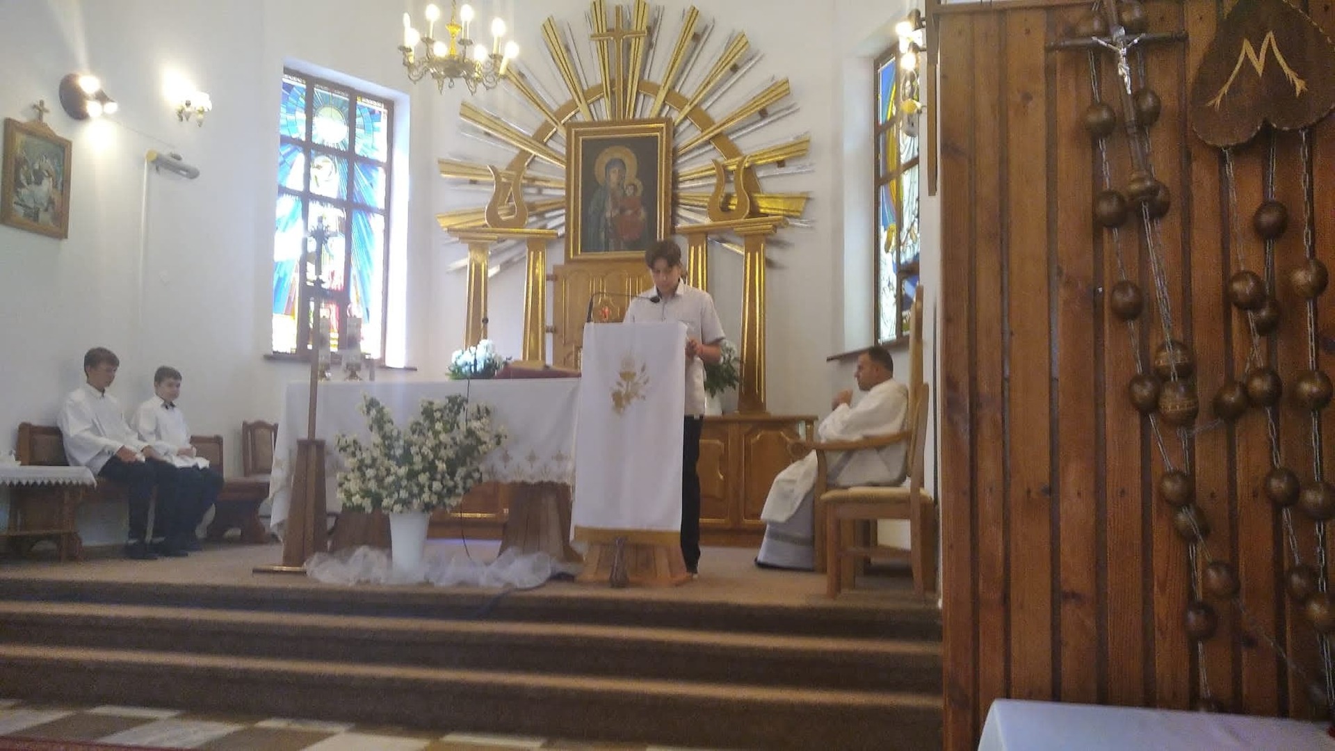 Po akademii wszyscy zebrani udali się do pobliskiego kościoła na Mszę Świętą, którą uroczyście odprawił Ksiądz Proboszcz Grzegorz Chabros.