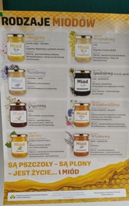 - drugi informujący o odmianach miodów,