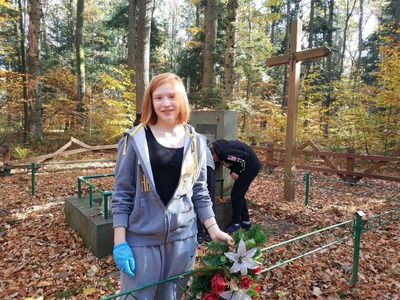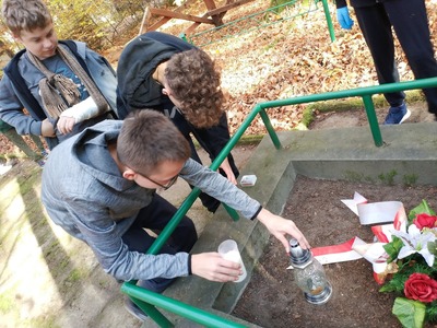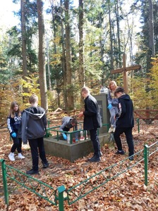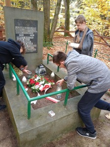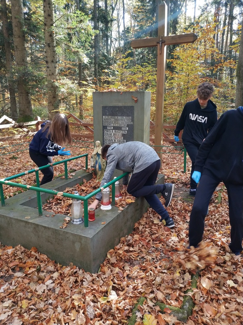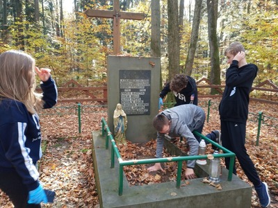 18 października 2022 roku uczniowie klasy VII i VIII wraz z nauczycielami E. Korgą i A. Sidor wybrali się na pieszą wycieczkę na cmentarz wojenny w Ulowie. Głównym celem wyprawy było uczczenie pamięci żołnierzy poległych w czasie II wojny światowej. Uczniowie posprzątali teren cmentarza, pomodli się i zapali znicze na grobie. W czasie wycieczki poznawali tradycje, zwyczaje związane ze świętem zmarłych w naszej kulturze i religii, przypomnieli sobie jak należy zachowywać się na cmentarzu . To była bardzo ważna lekcja wychowania patriotycznego.