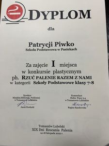 I miejsce Patrycja Piwko z kl. VIII