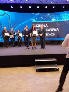 Dziś Pani dyrektor Ewa Probola odebrała dla szkoły sprzęt komputerowy na sumę ponad 32 tys. złotych. Nagrodę wręczał Pan Jarosław Stawiarski - Marszałek Województwa Lubelskiego i Pan Arkadiusz Gałązka - Dyrektor Biura projektowego.
