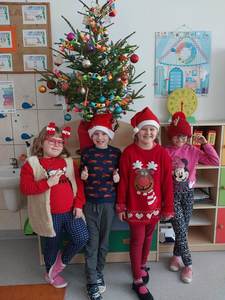 Z inicjatywy Samorządu Uczniowskiego odbył się wczoraj w naszej szkole Dzień Świątecznego Stroju. Świąteczny nastrój zapanował nie tylko na korytarzu szkolnym ale także w naszych sercach. Z niecierpliwością czekamy na pierwszą gwiazdkę!