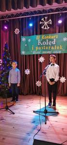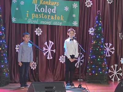 Duet Fabiana i Bartosza zajął III miejsce w kategorii klas I-III, z kolędą "A Jezus czeka w stajence".