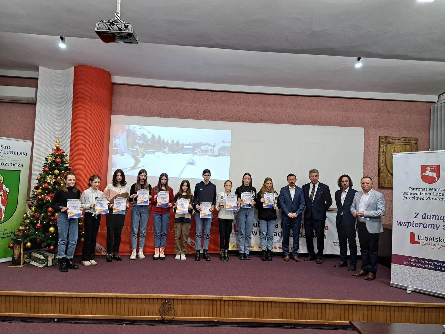 19 grudnia 2022 w Urzędzie Miasta Tomaszów Lubelski odbyło się uroczyste podsumowanie LUBELSKIEJ LIGI ROZTOCZE 2022 - XXII Grand Prix w biegach narciarskich o Puchar Burmistrza Miasta. Gośćmi specjalnymi byli Prezes Polskiego Związku Narciarskiego Pan Adam Małysz i Sekretarz Generalny PZN Pan Jan Winkiel. Miło nam poinformować, że wśród wyróżnionych zawodników znalazła się nasza uczennica Karolina Maciejko. W klasyfikacji generalnej Karolina uplasowała się na 8 miejscu na 18 startujących w jej kategorii zawodniczek. Jesteśmy dumni, że nasza uczennica kultywuje tradycje narciarskie Pasiek. Serdecznie gratulujemy i życzymy dalszych sukcesów!