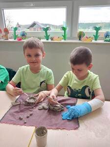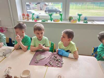 powstawania gotowego produktu ceramicznego. Następnie zaprosiły dzieci do samodzielnego