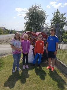 W poniedziałek 5 czerwca 2023r. w ramach współpracy szkoły z hospicjum Santa Galla w Łabuńkach zostały przekazane pieniądze ze sprzedaży zabawek „yoyo” oraz korki, które uczniowie skrupulatnie zbierali przez cały rok. Również Gmina Tomaszów Lubelski wsparła hospicjum przekazując korki z serduszka stojącego przed szkołą na ten szczytny cel.