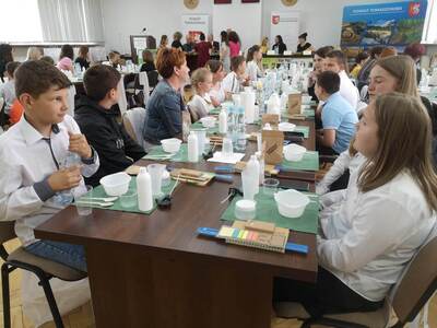 7 czerwca 2023 miało miejsce rozstrzygnięcie konkursu "Potrawy z mojego ogródka" skierowanego do klas szkół podstawowych z terenu powiatu tomaszowskiego. Uczniowie mieli za zadanie przygotowanie i zaprezentowanie potrawy z produktów wyhodowanych w sposób ekologiczny w przydomowych ogródkach oraz przedstawienie zdjęć obrazujących własną hodowlę warzyw i owoców. Z zaprezentowanych fotografii podczas konferencji stworzona została wystawa. Uczniowie klasy VI z naszej szkoły pod opieką wychowawczyni pani Anny Gozdek zdobyli wyróżnienie i nagrody rzeczowe. Konkurs oraz warsztaty to działania realizowane w ramach projektu pn. "Bądźmy ekologiczni..." dofinansowanego ze środków NFOŚiGW oraz WFOŚiGW w Lublinie z Programu Regionalnego Wsparcia Edukacji Ekologicznej, zorganizowane przez Stowarzyszenie Samorządów Powiatu Tomaszowskiego. Serdecznie dziękujemy pani Agnieszce Maciejko za pomoc w przygotowaniu do konkursu.