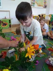 21 czerwca 2023Obchodzony w przedszkolu Dzień Kwiatów, sprawił, że w sali zrobiło się naprawdę pięknie. Dzieci miały okazję poznać różne rodzaje kwiatów, ich budowę, były także rozmaite zadania i doświadczenia związane z kwiatami. Z kwiatów przyniesionych przez dzieci powstał kolorowy bukiet . Nie zabrakło również prac plastycznych o tematyce kwiatowej.