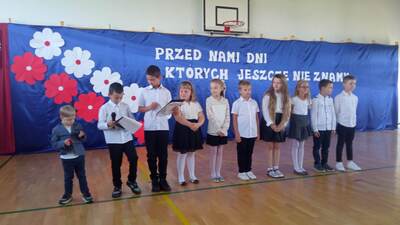 beztroski. Uroczystość rozpoczęliśmy 4 września 2023 Mszą Świętą, którą odprawił dla nas ks. Dziekan Grzegorz Chabros. O godz. 9.00 zebraliśmy się w Sali gimnastycznej, aby w szkole kontynuować inaugurację nowego roku szkolnego 2023/2024. Obejrzeliśmy krótki montaż słowno-muzyczny przygotowany przez uczniów klas II-III pod kierunkiem pani Jolanty Grzesik. Pani dyrektor odczytała list od pani Wójt Marzeny Czubaj-Gancarz i złożyła życzenia