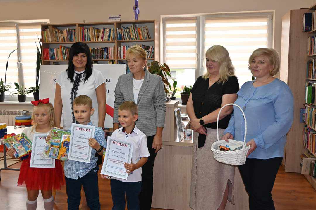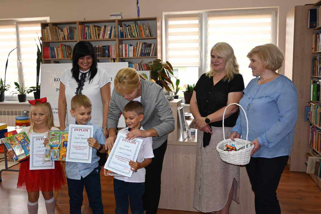Wojciech Mikuła i Paweł Mazurek z oddziału przedszkolnego oraz Bartosz Mikuła z klasy 3. Dyplomy oraz nagrody konkursowe wręczyła Wójt Gminy Tomaszów Lubelski Marzena Czubaj-Gancarz.
