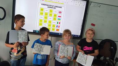 26 września to Międzynarodowy Dzień Języków Obcych. Jest to dobra okazja, by zwrócić dzieciom uwagę, jak ważna jest umiejętność porozumiewania się z ludźmi, którzy mieszkają w innych częściach naszego globu. Dzięki znajomości języków obcych mamy lepszy dostęp do wiedzy oraz większe możliwości poznawania nowych ludzi i zawierania przyjaźni. Nawet odległe zakątki świata mogą stać się nam bliższe, a zupełnie odmienne kultury - bardziej zrozumiałe. W naszej szkole świętowaliśmy ten dzień grając w językowe gry interaktywne oraz sprawdzając swoją wiedzę na temat ciekawostek dotyczących różnych krajów.