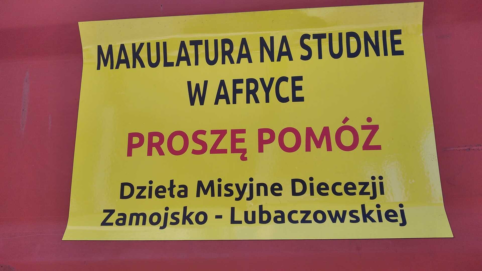Już drugi rok prowadzimy zbiórkę makulatury z przeznaczeniem na budowę studni w Afryce. Inicjatorem akcji szkolnej jest Samorząd Uczniowski. Makulaturę przekazaliśmy do parafii Świętego Józefa w Tomaszowie Lubelskim, gdzie jest ustawiony specjalny kontener. Dzięki tej akcji po raz kolejny włączyliśmy się w jedno z Dzieł Misyjnych Diecezji Zamojsko –Lubaczowskiej. . Nadrzędnym celem akcji jest wyrobienie nawyku segregacji odpadów oraz podniesienia świadomości ekologicznej uczniów. Dzięki zbiórce makulatury uczniowie wdrażani są do działań na rzecz ochrony środowiska. Pamiętajmy, że każde zebrane 60 kg ratuje przed ścięciem jedno drzewo. Pomoc w każdej formie jest godna docenienia.