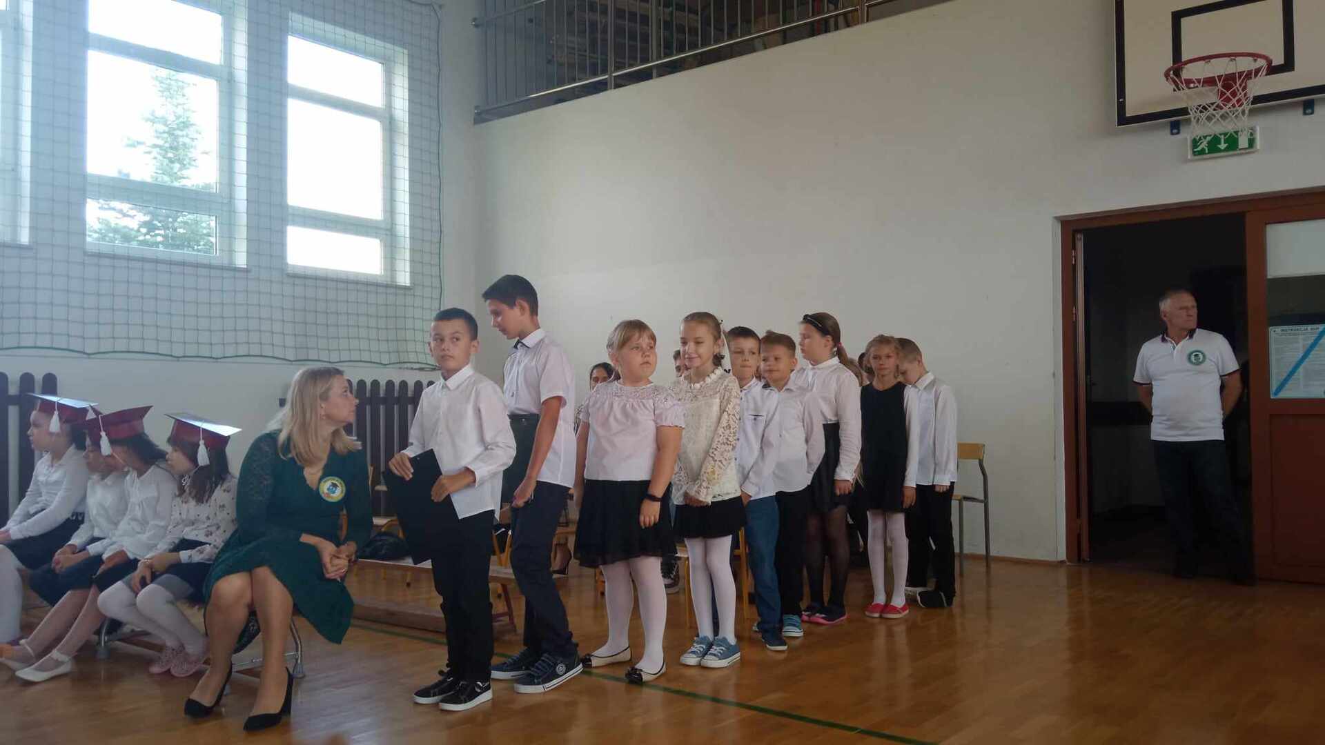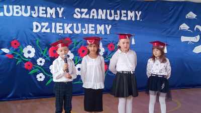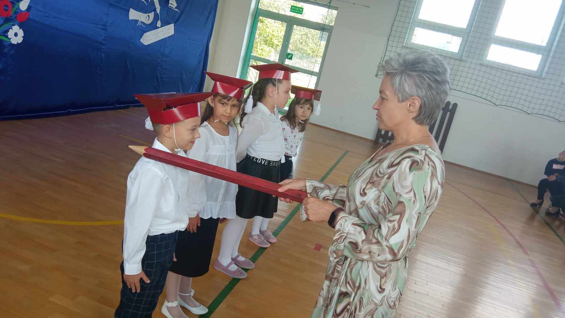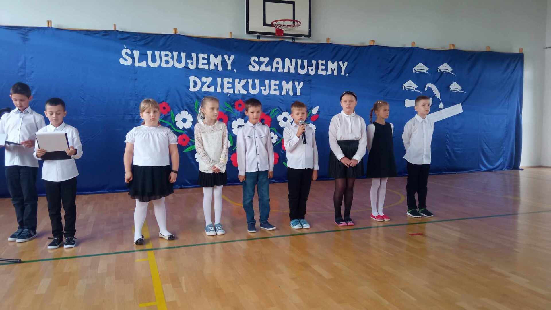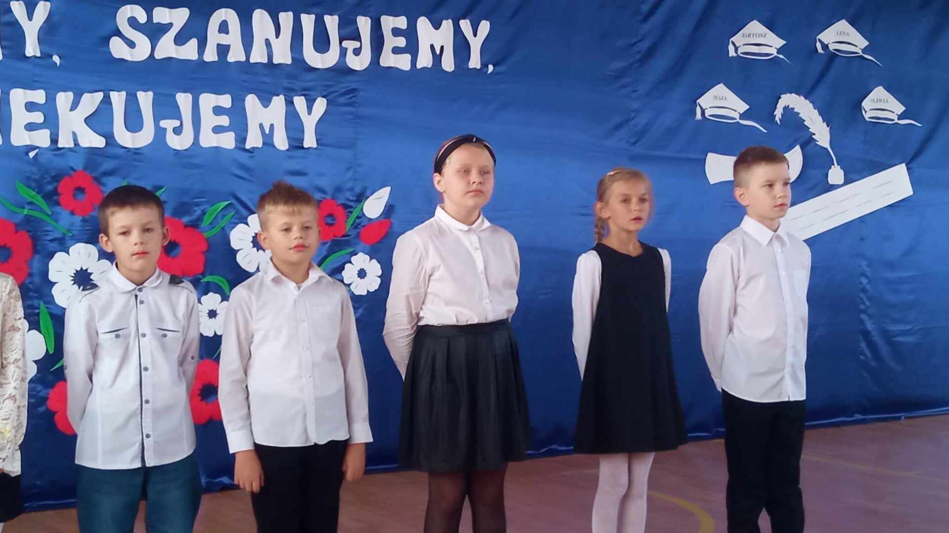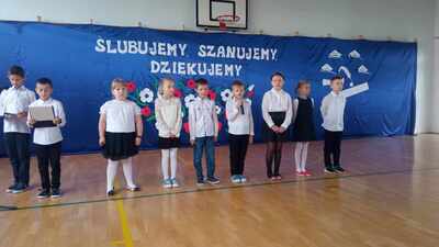 13 października 2023 uroczyście świętowaliśmy Dzień Edukacji Narodowej. Przed zgromadzoną społecznością szkolną uczniowie klasy II i III zaprezentowali wiersze i piosenki z podziękowaniami dla wszystkich nauczycieli i pracowników oświaty, za pasję i entuzjazm w tworzeniu jak najlepszej jakości pracy szkoły. Najmłodsi uczniowie naszej szkoły przeżyli pierwszą ważną uroczystość - pasowanie na ucznia czyli włączenie do braci uczniowskiej. Zanim pierwszaki przystąpiły do aktu ślubowania, śpiewająco zdały "egzamin" na ucznia naszej szkoły. Pani Dyrektor Alina Omelczuk oficjalnie dokonała aktu pasowania na ucznia, a następnie przeczytała list z okazji Dnia Edukacji Narodowej w imieniu Pani Wójt Marzeny Czubaj-Gancarz. Na koniec głos zabrała przedstawicielka Rady Rodziców Beata Gwizdała dziękując nauczycielom za trud i życząc powodzenia i wytrwałości w codziennej pracy. Samorząd Uczniowski dla wszystkich nauczycieli i pracowników niepedagogicznych przygotował drobny upominek i przypinki z napisem "Nauczyciel na Medal". Uczniów przygotowały panie Jolanta Grzesik i Małgorzata Padyjasek.