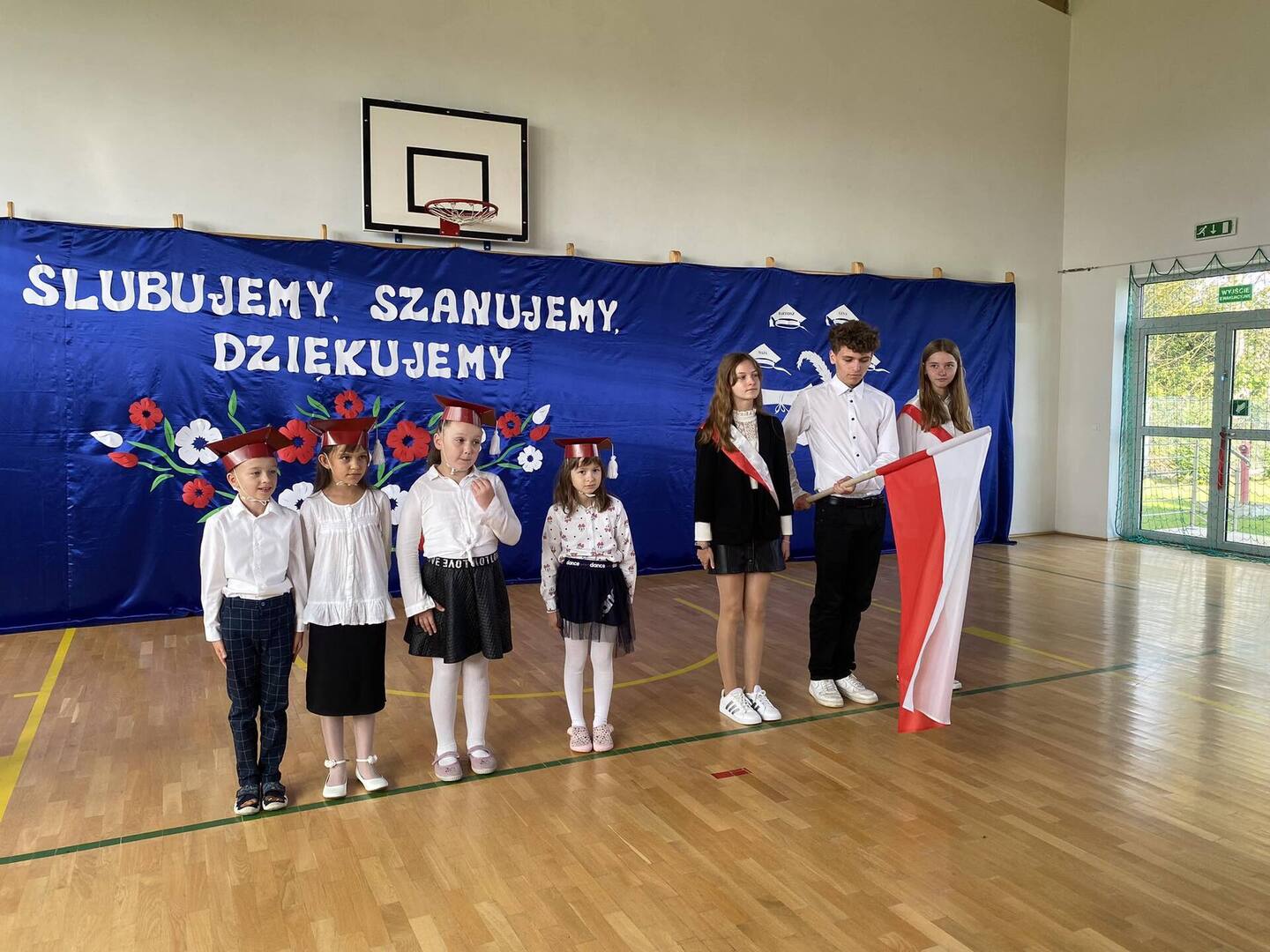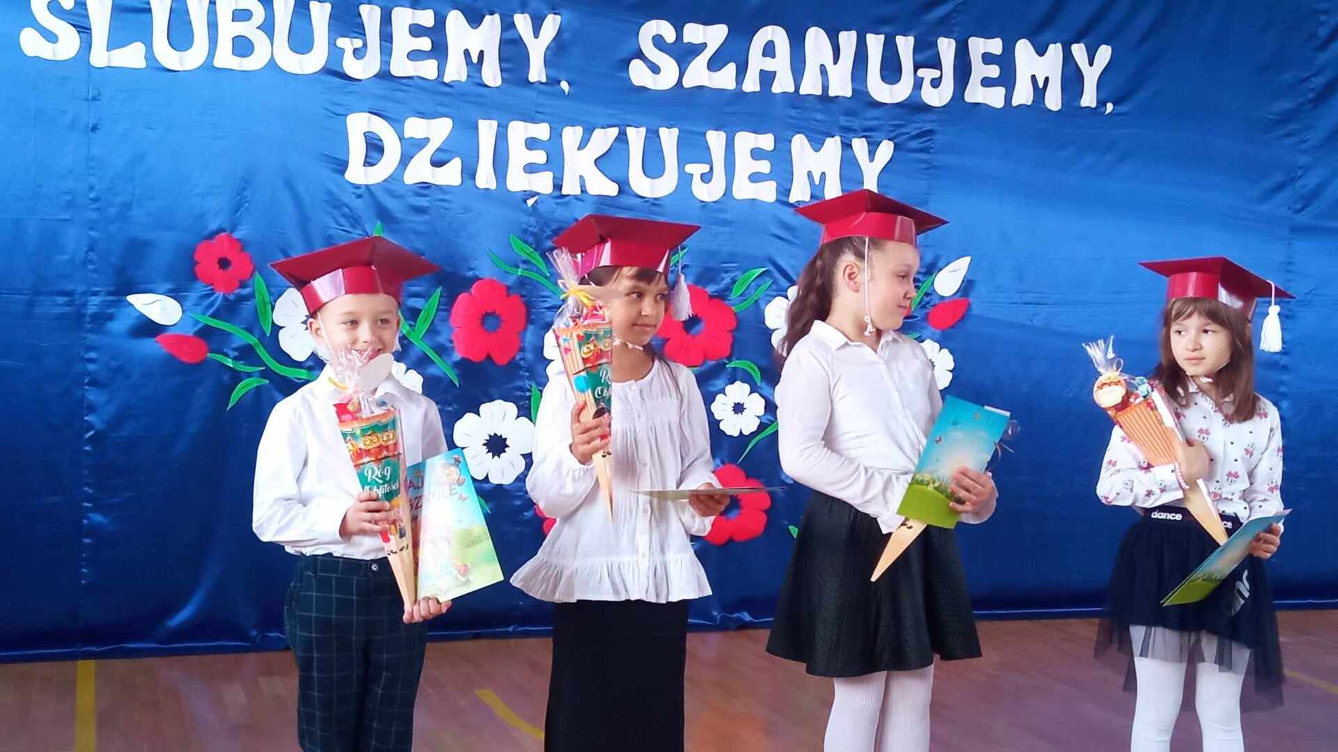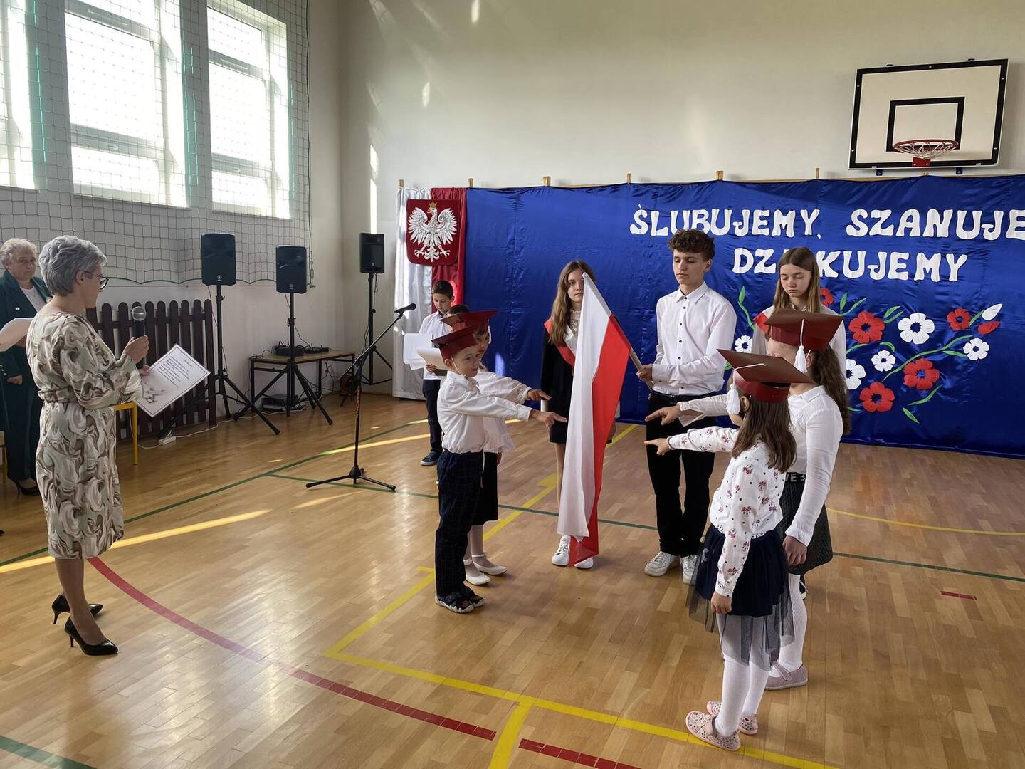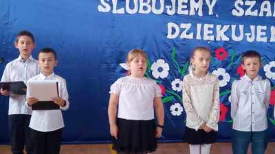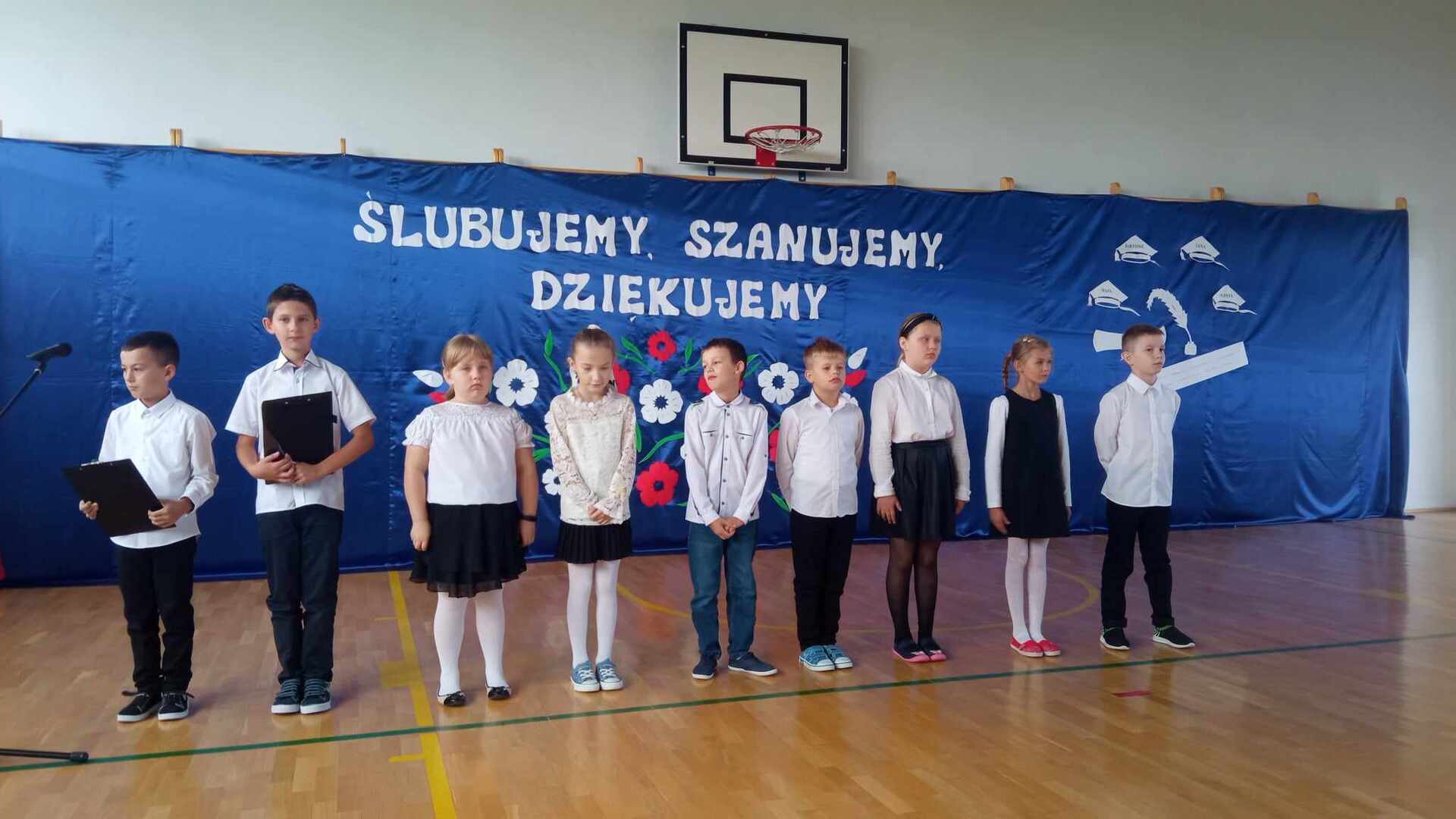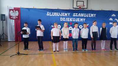 13 października 2023 uroczyście świętowaliśmy Dzień Edukacji Narodowej. Przed zgromadzoną społecznością szkolną uczniowie klasy II i III zaprezentowali wiersze i piosenki z podziękowaniami dla wszystkich nauczycieli i pracowników oświaty, za pasję i entuzjazm w tworzeniu jak najlepszej jakości pracy szkoły. Najmłodsi uczniowie naszej szkoły przeżyli pierwszą ważną uroczystość - pasowanie na ucznia czyli włączenie do braci uczniowskiej. Zanim pierwszaki przystąpiły do aktu ślubowania, śpiewająco zdały "egzamin" na ucznia naszej szkoły. Pani Dyrektor Alina Omelczuk oficjalnie dokonała aktu pasowania na ucznia, a następnie przeczytała list z okazji Dnia Edukacji Narodowej w imieniu Pani Wójt Marzeny Czubaj-Gancarz. Na koniec głos zabrała przedstawicielka Rady Rodziców Beata Gwizdała dziękując nauczycielom za trud i życząc powodzenia i wytrwałości w codziennej pracy. Samorząd Uczniowski dla wszystkich nauczycieli i pracowników niepedagogicznych przygotował drobny upominek i przypinki z napisem "Nauczyciel na Medal". Uczniów przygotowały panie Jolanta Grzesik i Małgorzata Padyjasek.