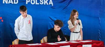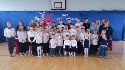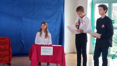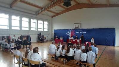 10 listopada w naszej szkole odbyła się uroczysta akademia z okazji 105. rocznicy odzyskania niepodległości pt. ,,Sąd nad Polską” przygotowana przez uczniów klas VII-VIII, pod opieką pani Agaty Pogorzelskiej. Uczniowie klas I-III zaprezentowali swoje umiejętności wokalne w pieśni patriotycznej "Ojczyzno ma".