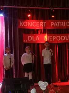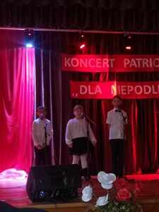 ". Naszą szkołę reprezentowali Lena Mazurek z klasy II, Fabian Jędrzejewski i Bartosz Mikuła z klasy III, śpiewając piosenkę "Ojczyzno ma