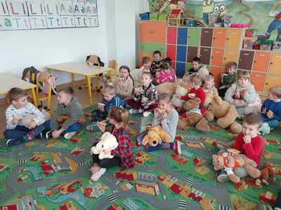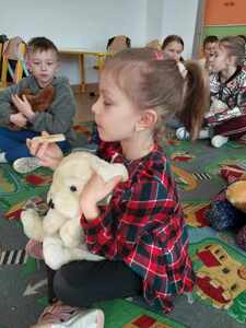Święto Pluszowego Misia to fajna okazja, aby powrócić do wspomnień z dzieciństwa i opowiedzieć o swoim ulubionym pluszowym przyjacielu. Data ta, czyli 25 listopada, nie jest przypadkowa, bo tego dnia przypada rocznica powstania tej maskotki. I właśnie w tym dniu przedszkolaki oraz dzieci z klas I- III świętowały wraz ze swoimi pluszakami. Opowiadały, dlaczego lubią swoje pluszaki i jak się z nimi bawią. Dzieci poznały również historię Święta Misia, bawiły się przy piosenkach, uczestniczyły w zabawach ruchowych i zgadywankach, a także była degustacja miodu na waflu. Dzieci wykonywały również różne prace plastyczne. Ten wyjątkowy dzień umilił dzieciom Ksiądz Dziekan Grzegorz Chabros, który przybył ze swoim pluszakiem Kubusiem. Radości i wesołej zabawy nie było mało. Ten dzień był pełen uśmiechu oraz wspólnej zabawy.