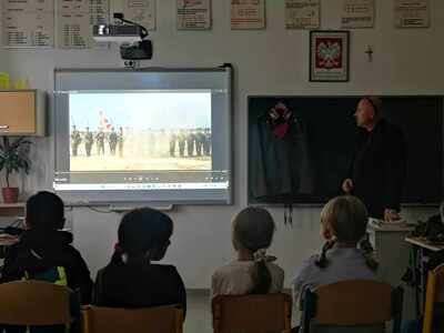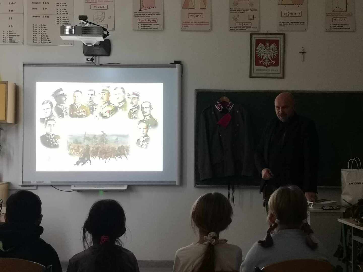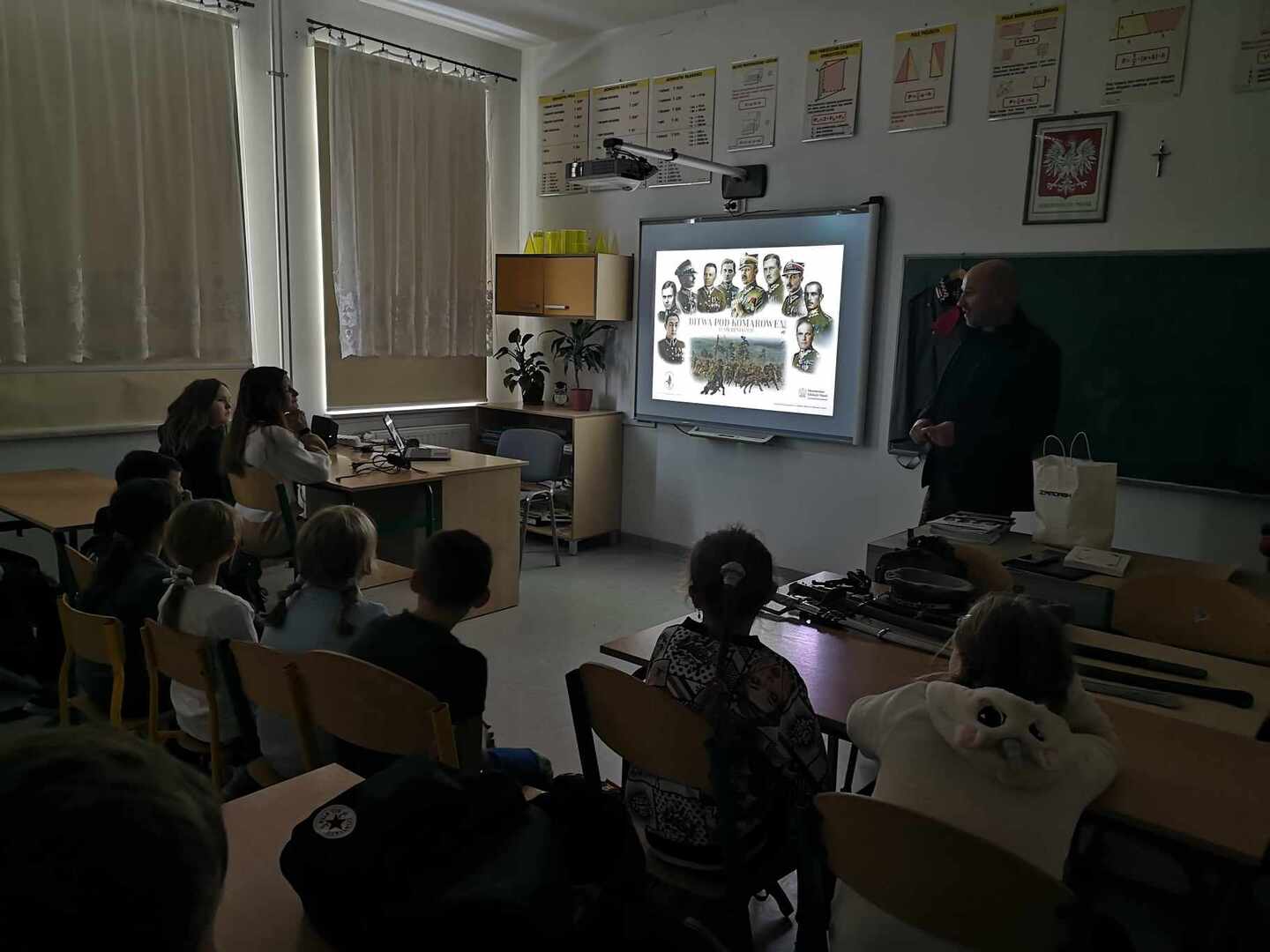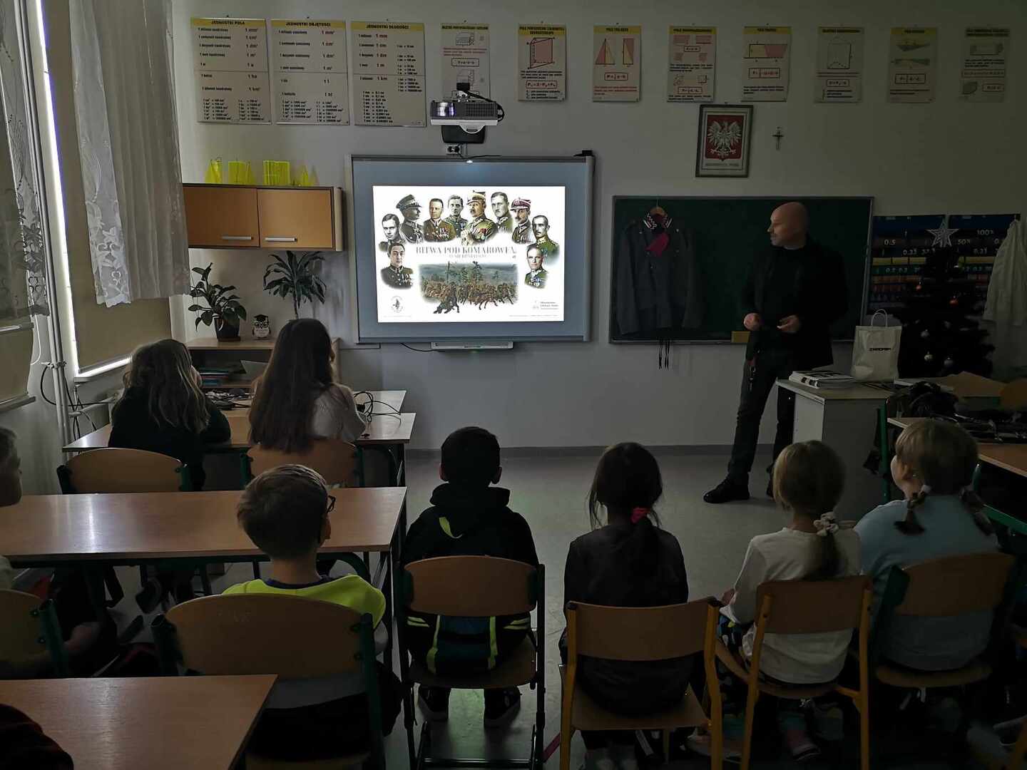 Na zaproszenie Pani Dyrektor Aliny Omelczuk naszą szkołę odwiedził Prezes Stowarzyszenia "Bitwa po Komarowem" Pan Tomasz Dudek, który w ciekawy i barwny sposób przedstawił uczniom historię największej od 1813 roku bitwy kawaleryjskiej. Uczniowie mieli sposobność poznania sylwetek bohaterów, przebiegu bitwy oraz etapów powstawania pomnika.