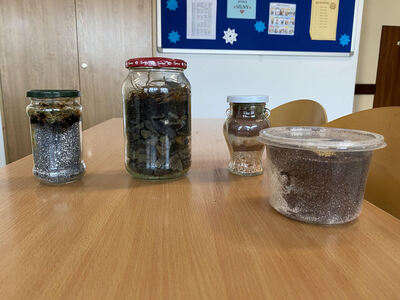 Następnie kształtując umiejętności komunikacji i pracy w zespole uczniowie przygotowywali wybrane przez siebie profile glebowe wykorzystując to, co można znaleźć w otoczeniu lub w kuchni