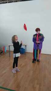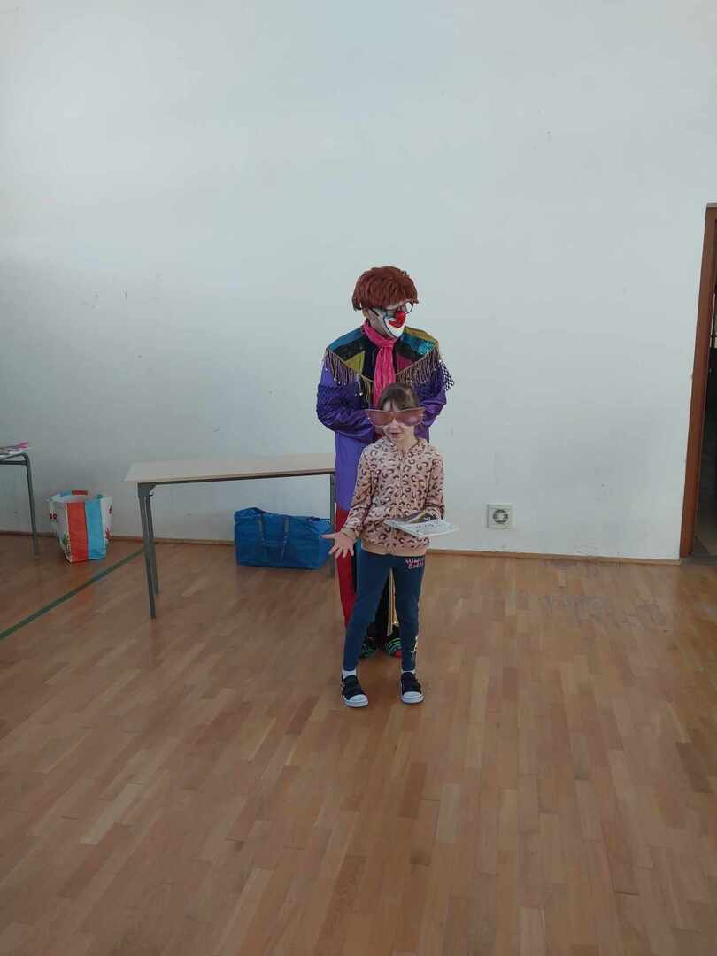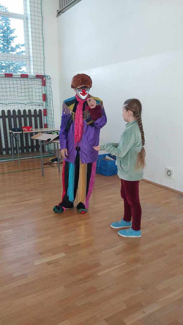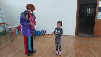 Clown zaskoczył nas kreatywnymi i interaktywnymi zajęciami, w trakcie których każde dziecko mogło aktywnie uczestniczyć i czerpać radość z nauki.