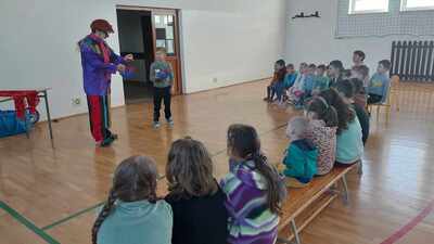 Clown, pełen energii i pozytywnego podejścia, zaprezentował nam fascynujący program "Nauka przez Zabawę".