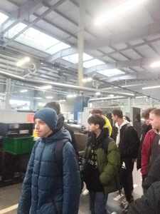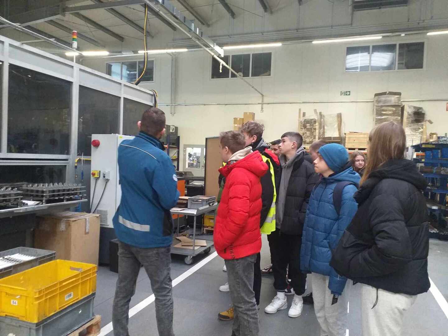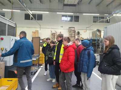 Następnie ruszyliśmy na hale produkcyjne, gdzie pod czujnym okiem doświadczonych pracowników i nauczycieli, nasza młodzież miała wyjątkową szansę przyjrzeć się nowoczesnym obrabiarkom sterowanym numerycznie (CNC), prasom, tokarkom i wielu innym maszynom.