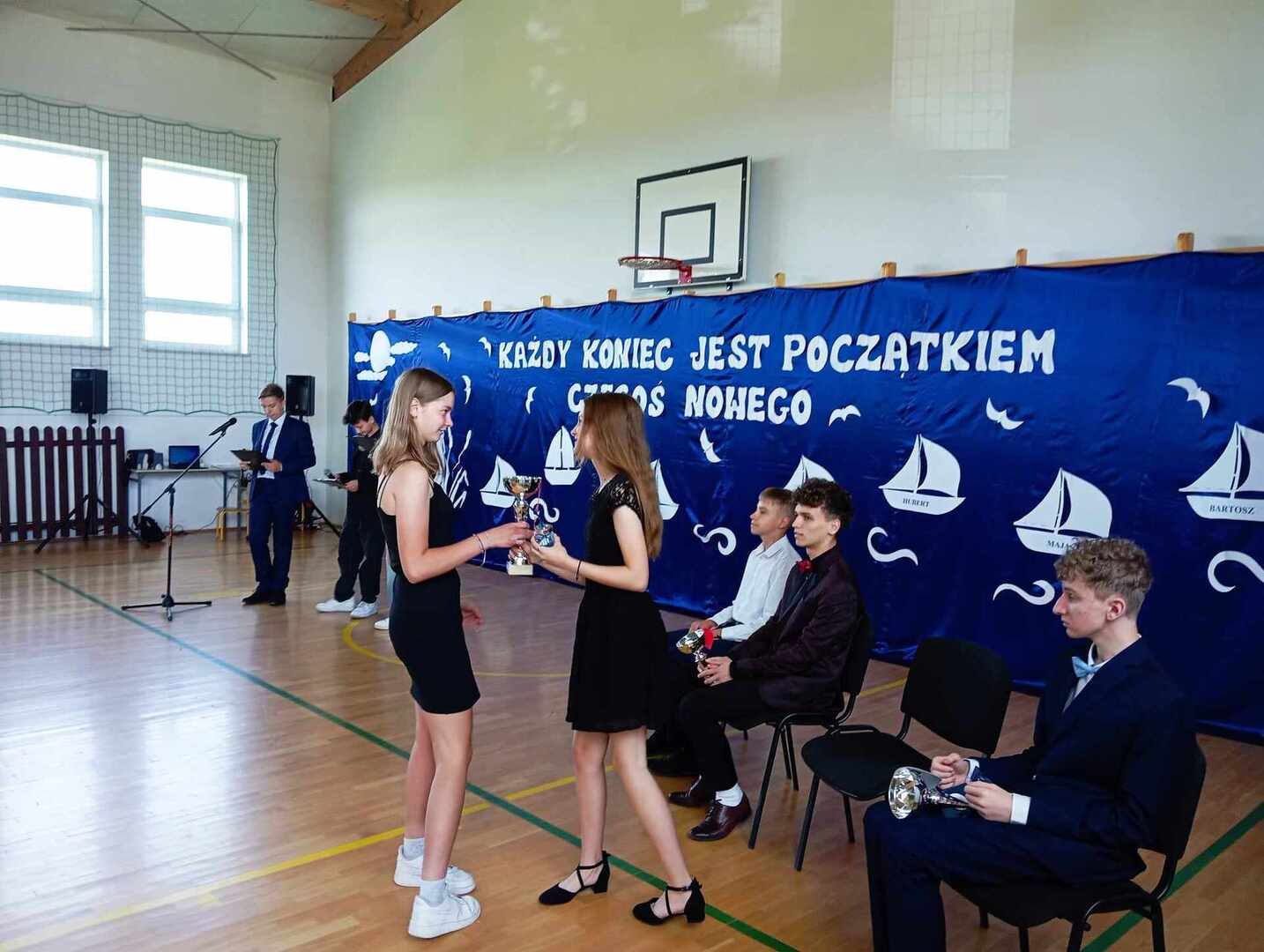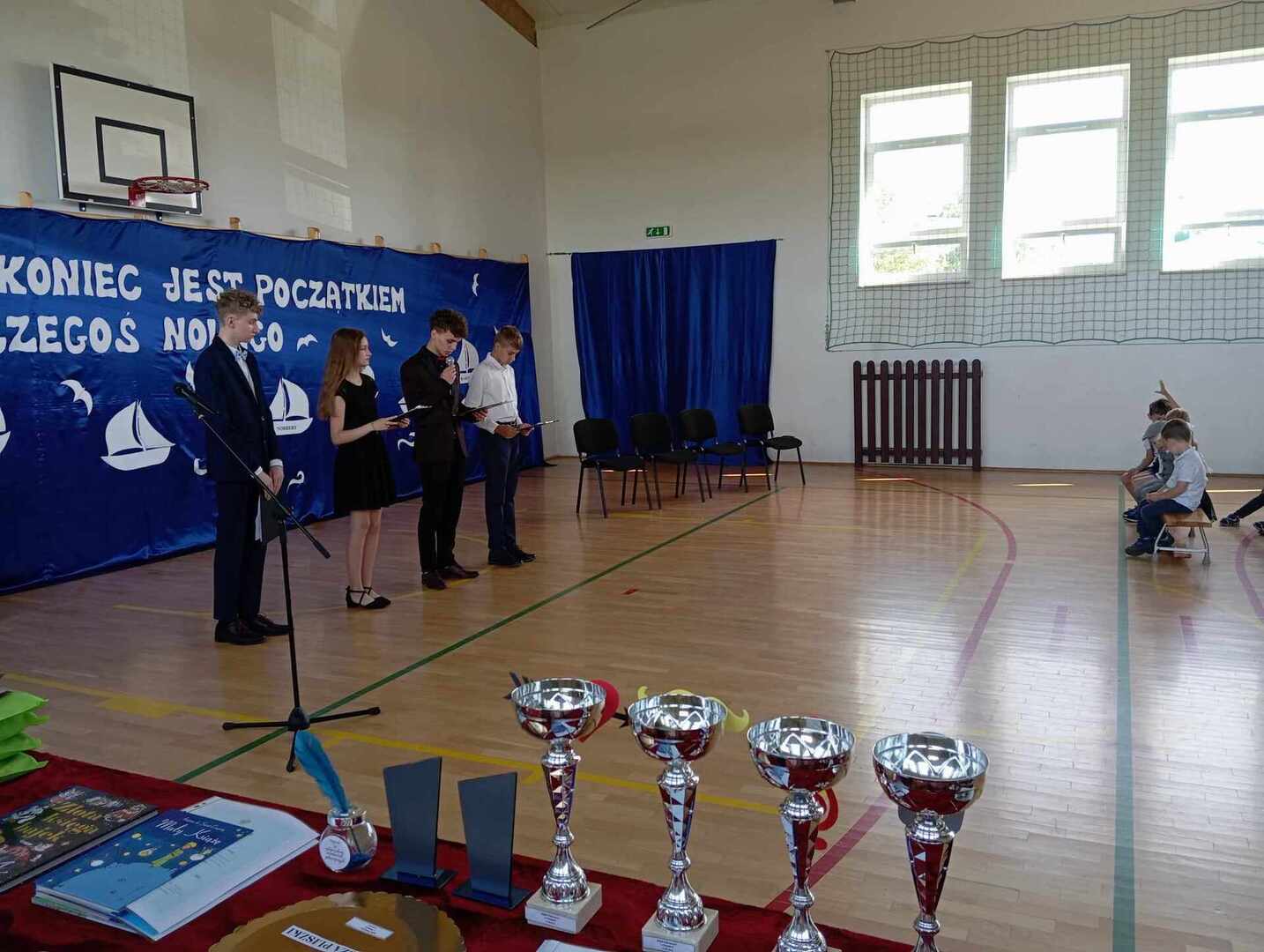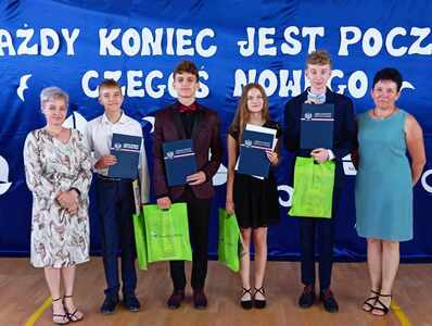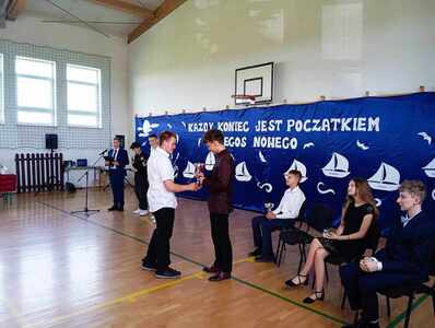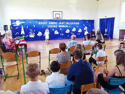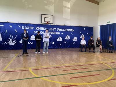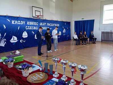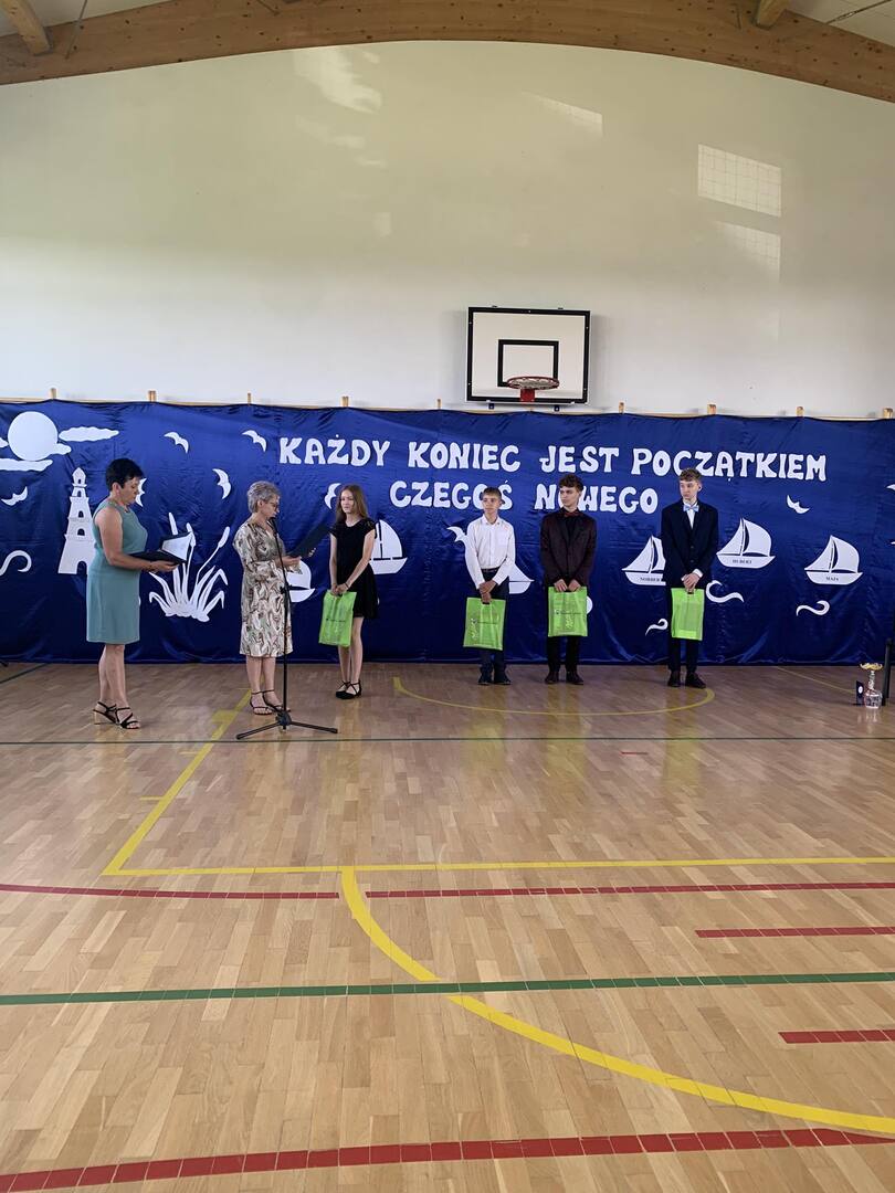 Na początek w Kościele Narodzenia Najświętszej Maryi Panny odbyła się Msza Święta, która była czasem refleksji i podziękowań za miniony rok. Serdecznie dziękujemy Księdzu Dziekanowi Grzegorzowi Chabrosowi za wygłoszone Słowo Boże i całoroczną współpracę. Po Mszy na sali gimnastycznej odbyła się część artystyczna przygotowana przez siódmoklasistów i ósmoklasistów. Pani dyrektor Alina Omelczuk wręczyła świadectwa i wyróżnienia oraz wygłosiła wzruszające przemówienia.