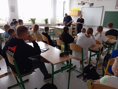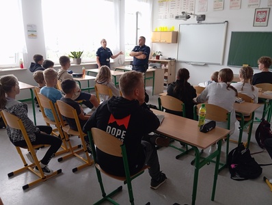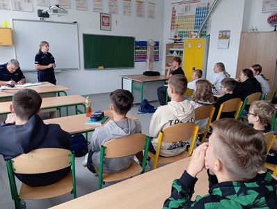 W dniu 10.09.2024r. odbyło się spotkanie klas I-III z policjantem. Podczas cyklu edukacyjnego Pan dzielnicowy przypomniał dzieciom między innymi jakich zasad należy przestrzegać, aby bezpiecznie dotrzeć do szkoły oraz jak ważne są elementy odblaskowe dla pieszego. Ponadto przypomniał także o numerach alarmowych, z których należy korzystać w sytuacji zagrożenia. Dzieci czynnie uczestniczyły w spotkaniu, dzieliły się swoimi spostrzeżeniami i doświadczeniami oraz zadawały bardzo dużo pytań.
