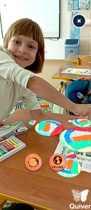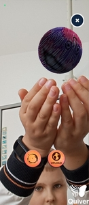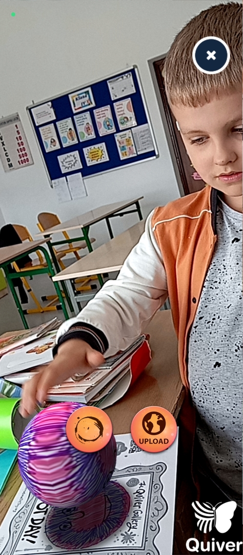 Na lekcji angielskiego w klasach młodszych dzieci miały okazję używać nowoczesnych technologii z aplikacją Quiver – dzięki rozszerzonej rzeczywistości ich rysunki dosłownie ożyły!