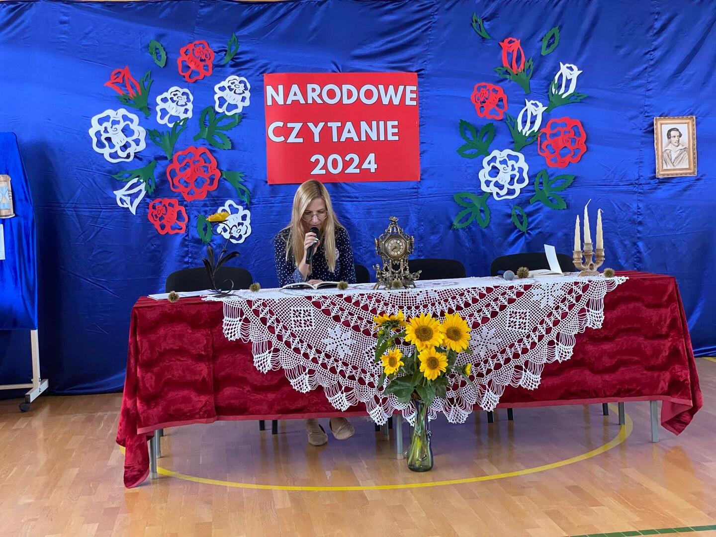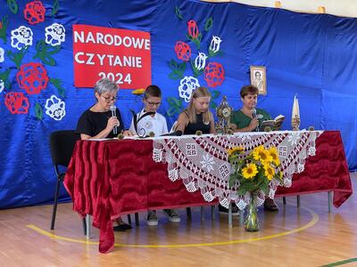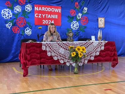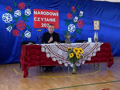 Narodowe Czytanie "Kordiana" Juliusza Słowackiego to jedno z najważniejszych wydarzeń kulturalnych, które miało miejsce w naszej szkole. Wśród zaproszonych gości znalazł się ksiądz proboszcz Grzegorz Chabros. Pani dyrektor, Alina Omelczuk, przywitała wszystkich zgromadzonych uczestników i opowiedziała o fenomenie Narodowego Czytania, które ma na celu promowanie polskiej literatury oraz integrowanie społeczności szkolnej.