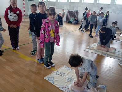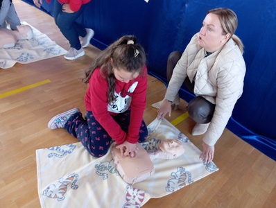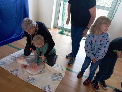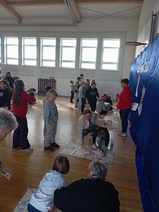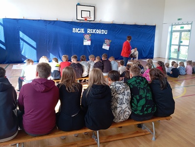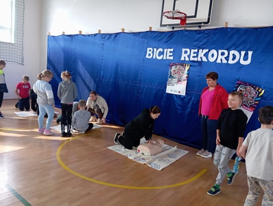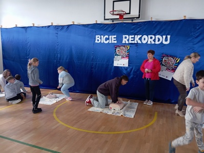 W środę 16 października w ramach Europejskiego Dnia Przywracania Czynności Serca w całej Polsce po raz kolejny przeprowadzana była akcja bicia rekordu w jednoczesnym prowadzeniu resuscytacji krążeniowo – oddechowej przez jak największą ilość osób. Do tego wartościowego przedsięwzięcia przyłączyła się również i nasza szkoła. Głównym celem akcji było promowanie nauki pierwszej pomocy. Przy użyciu fantomów uczestnicy przez pół godziny "przywracali czynność serca" Na przemian wykonywali 30 uciśnięć klatki piersiowej i 2 oddechy ratownicze. Dzieci doskonale wiedziały jak należy postępować, ponieważ niedawno naszą szkołę odwiedził ratownik medyczny. Jesteśmy dumni z faktu, że są wśród naszych uczniów osoby, które chętnie podejmują się tak ważnego wyzwania. Akcję ustanawiania REKORDU zorganizowała po raz kolejny Wielka Orkiestra Świątecznej Pomocy w ramach programu "Ratujemy i uczymy ratować".
