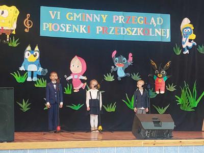 VI Gminny Przegląd Piosenki Przedszkolnej "Rozśpiewane nutki" VI Gminny Przegląd Piosenki Przedszkolnej "Rozśpiewane nutki" 20 listopada 2024 r. w Wiejskim Domu Kultury w Majdanie Górnym odbył się VI Gminny Przegląd Piosenki Przedszkolnej pod hasłem „Zwierzęta jesienią”. Naszą szkołę dumnie reprezentowali uczniowie z oddziału przedszkolnego: Zuzanna Konrad, Wojciech Mikuła i Franek Kawalec, którzy zaśpiewali piosenkę pt. „Kto tu mieszka?”. Serdecznie dziękujemy wszystkim uczestnikom za udział w Przeglądzie, a naszym małym artystom za wspaniały występ! Szczególne podziękowania kierujemy również do rodziców za pomoc w przygotowaniach i dowóz dzieci. Wielkie brawa dla naszych przedszkolaków! Zdjęcia Zobacz również Jak przeciwdziałać hejtowi w Internecie Spotkanie na temat cyberprzemocy – relacja z... OGÓLNOPOLSKA KAMPANIA „DZIECIŃSTWO BEZ PRZEMOCY” VI Gminny Przegląd Piosenki Przedszkolnej "Rozśpiewane... Wycieczka edukacyjna w ramach Światowego Tygodnia... Dzień Pluszowego Misia w naszej szkole 20 listopada 2024 Aktualności Wydrukuj Udostępnij Wyświetlono: 41