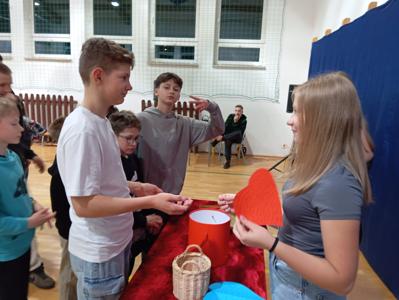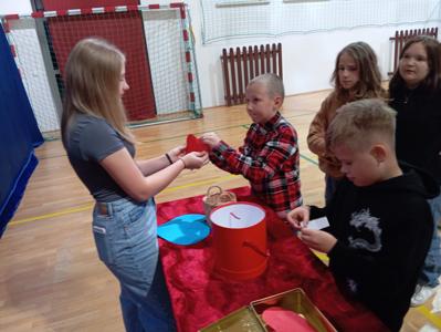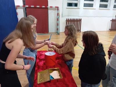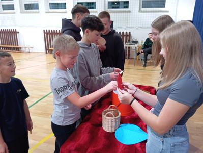 Uczniowie z zainteresowaniem uczestniczyli w różnorodnych wróżbach.