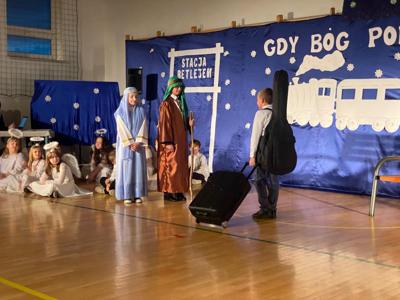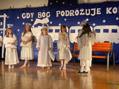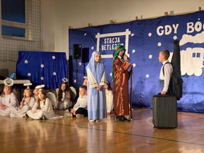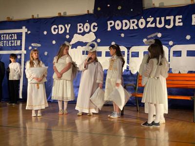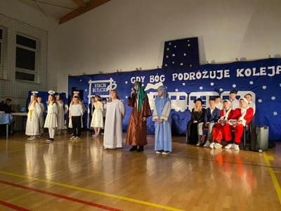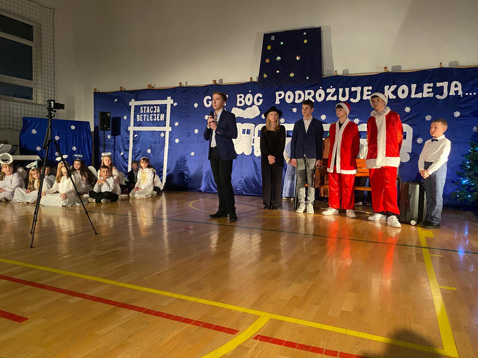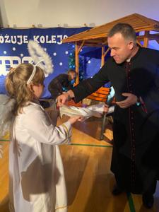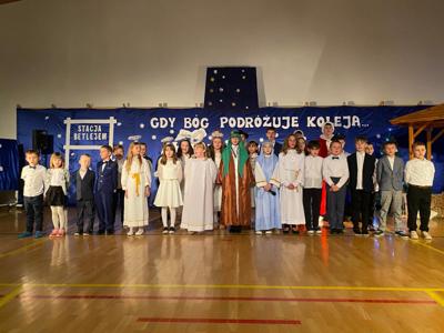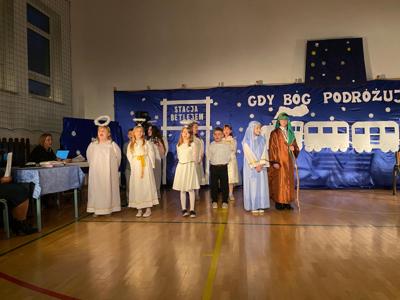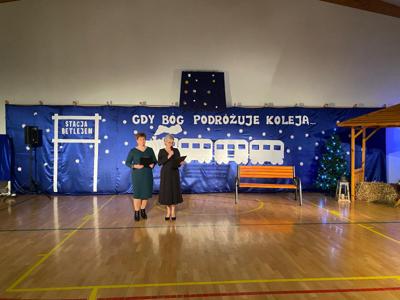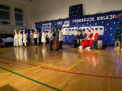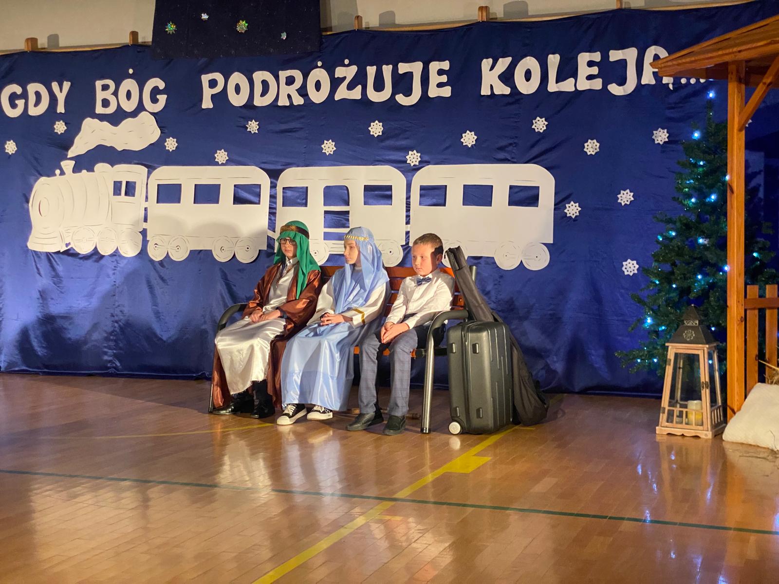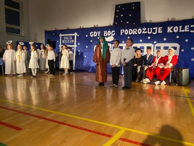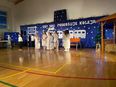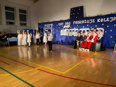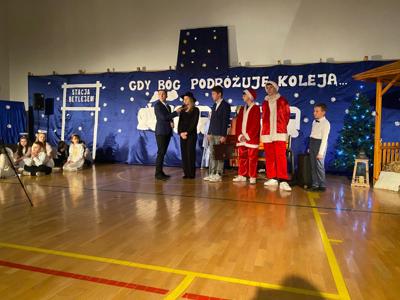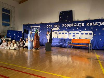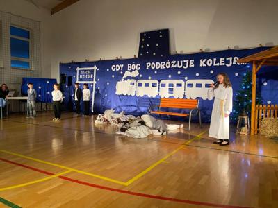 , a następnie uczniowie zaprezentowali jasełka pt. „Gdy Bóg podróżuje koleją”
