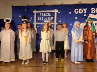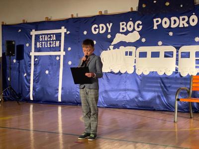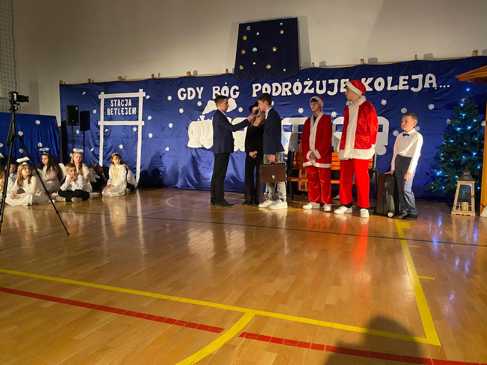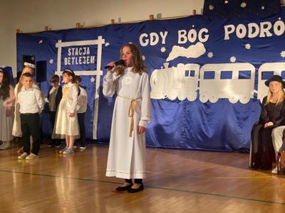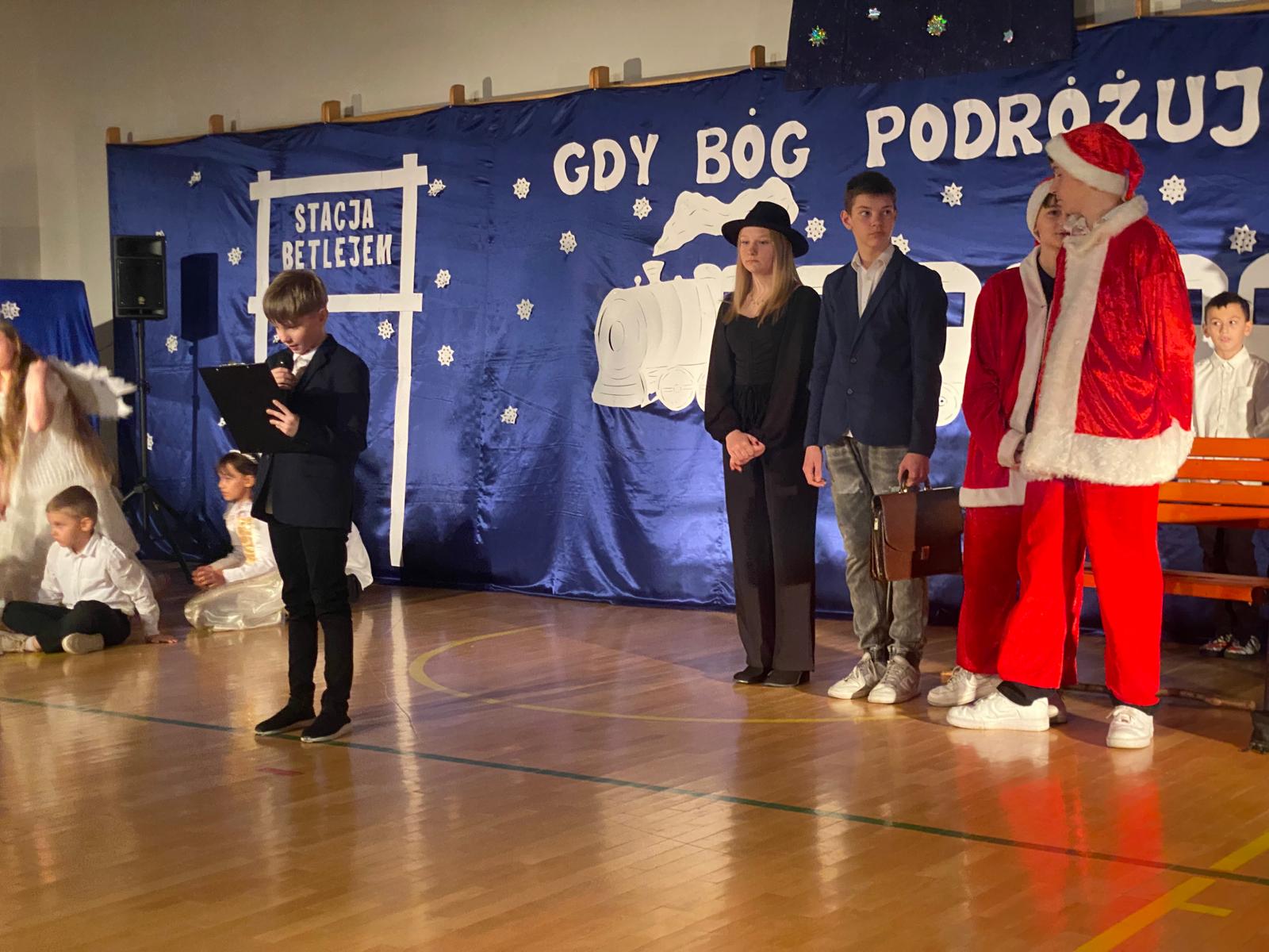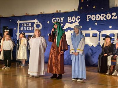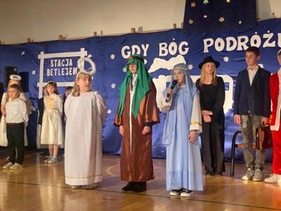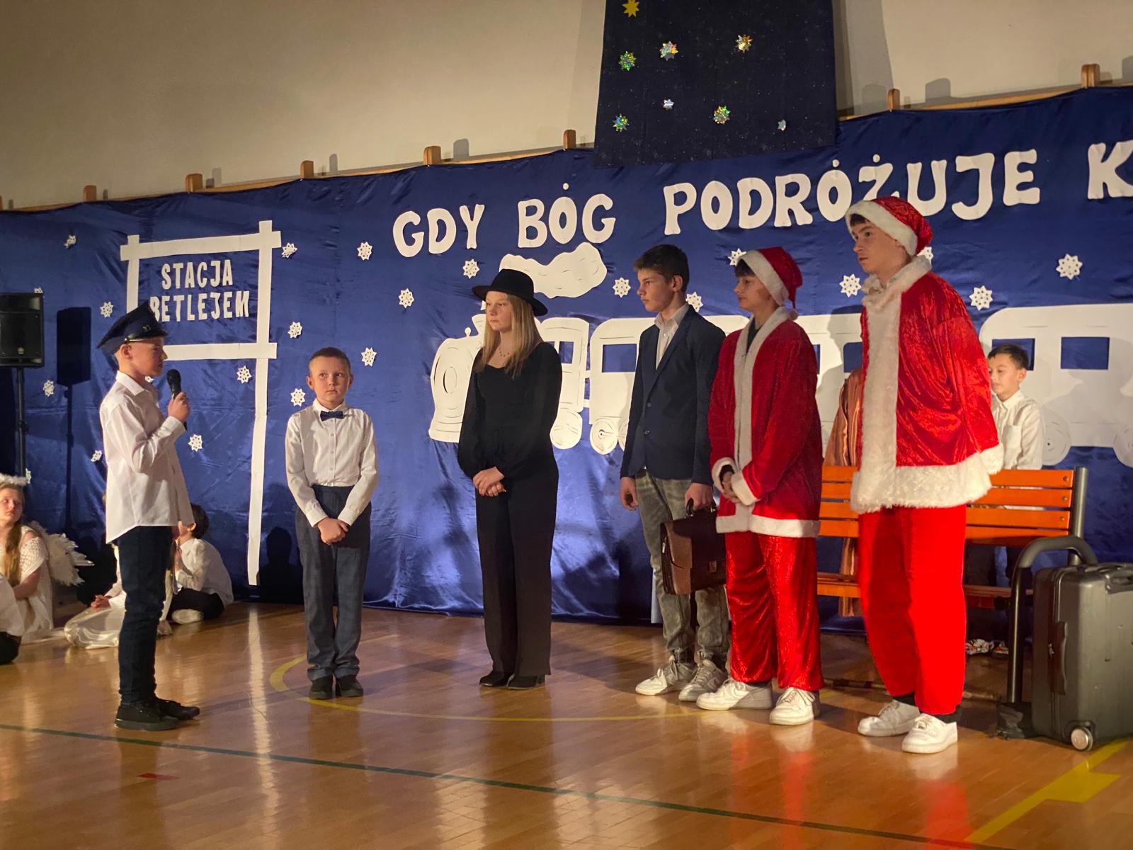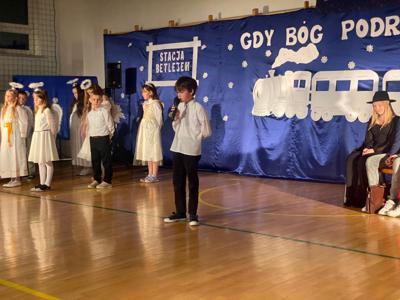 , a następnie uczniowie zaprezentowali jasełka pt. „Gdy Bóg podróżuje koleją”
