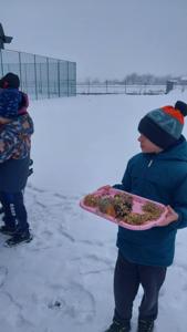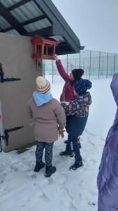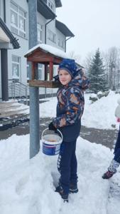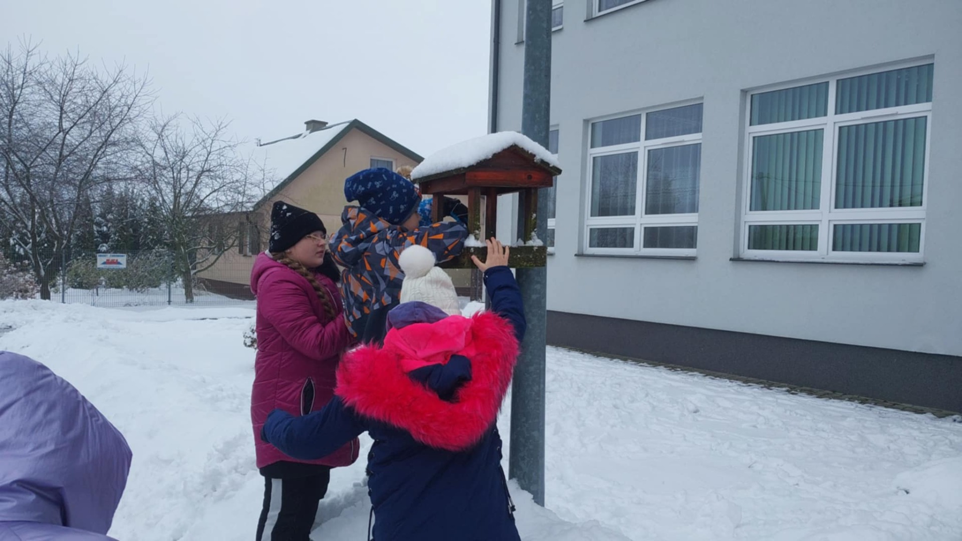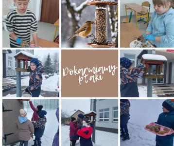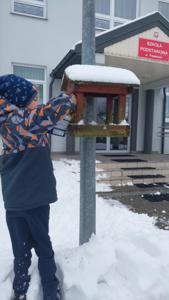 . Aby pomóc przetrwać zimę skrzydlatym przyjaciołom, uczniowie klasy II i III rozpoczęli akcję dokarmiania ptaków. Przed rozpoczęciem dokarmiania dzieci dowiedziały się, jaki pokarm jest odpowiedni dla ptaków i gdzie należy go umieszczać.