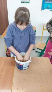 , które własnoręcznie przygotowały. Następnie produkty te zawiesiły na drzewach i w karmnikach znajdujących się na terenie szkoły.