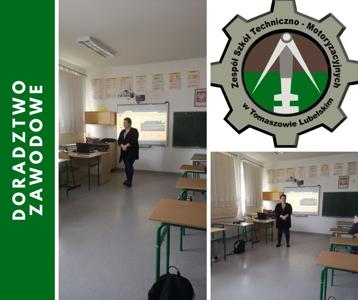 Dnia 7 marca 2025 r. w klasie 8 odbyło się spotkanie z nauczycielem szkoły ponadpodstawowej, który zaprezentował ofertę edukacyjną dotyczącą Zespołu Szkół Techniczno - Motoryzacyjnych w Tomaszowie Lubelskim. Celem spotkania było zapoznanie uczniów z możliwościami nauki w technikum lub szkole branżowej oraz zachęcenie do składania podań do tej szkoły.
