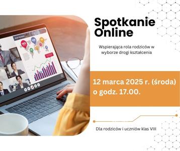 Serdecznie zapraszamy rodziców i uczniów klas VIII na spotkanie on-line ,,Wspierająca rola rodziców w wyborze drogi kształcenia".