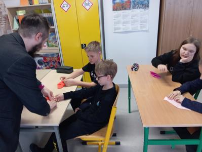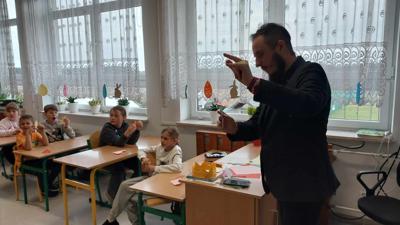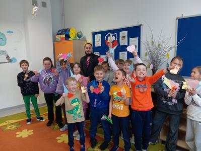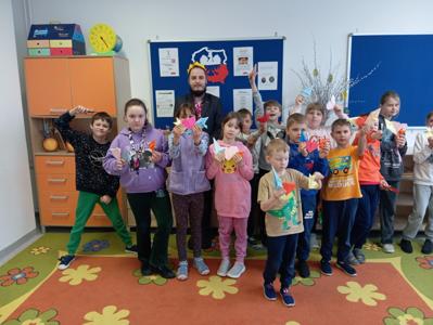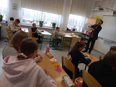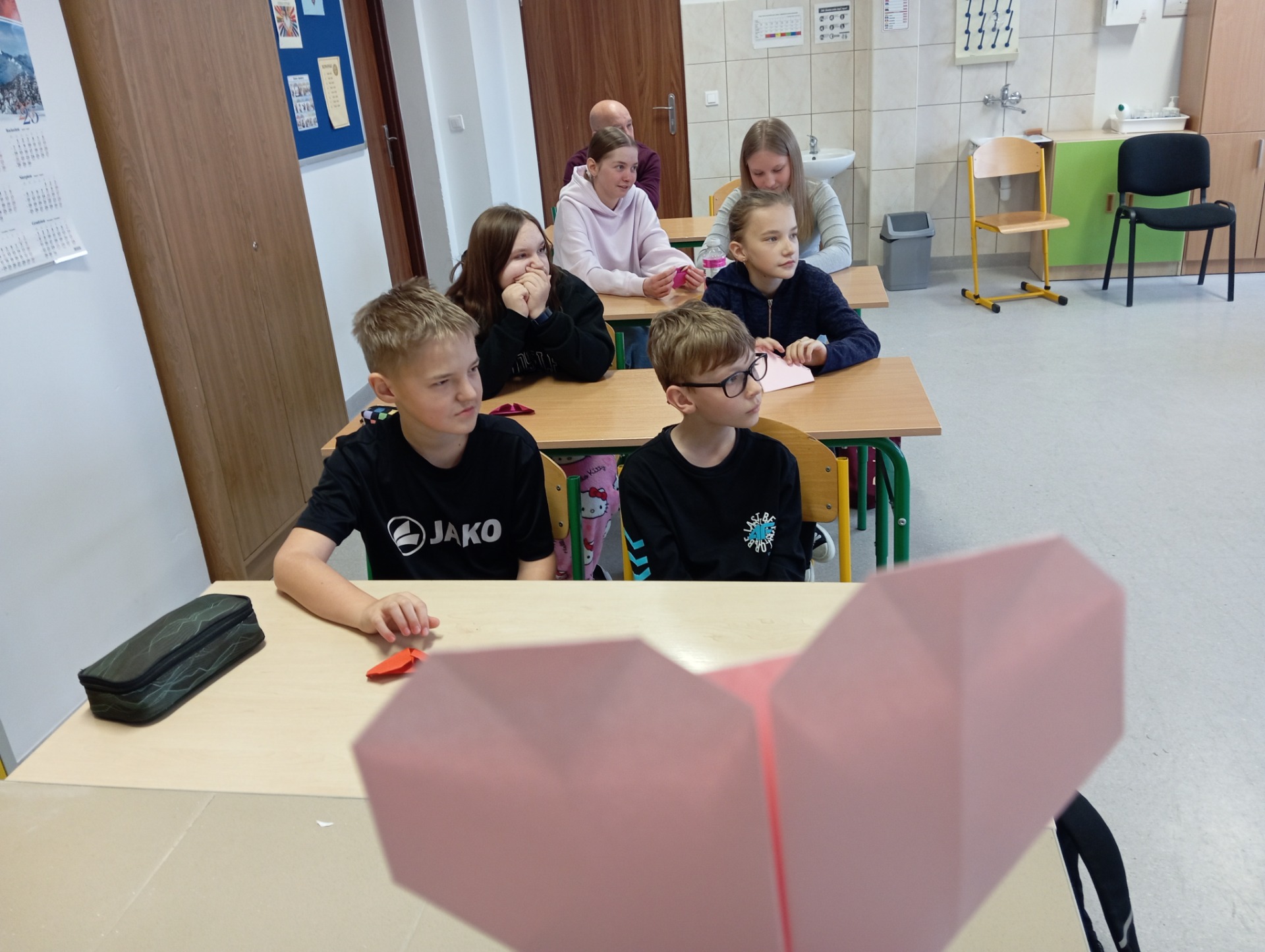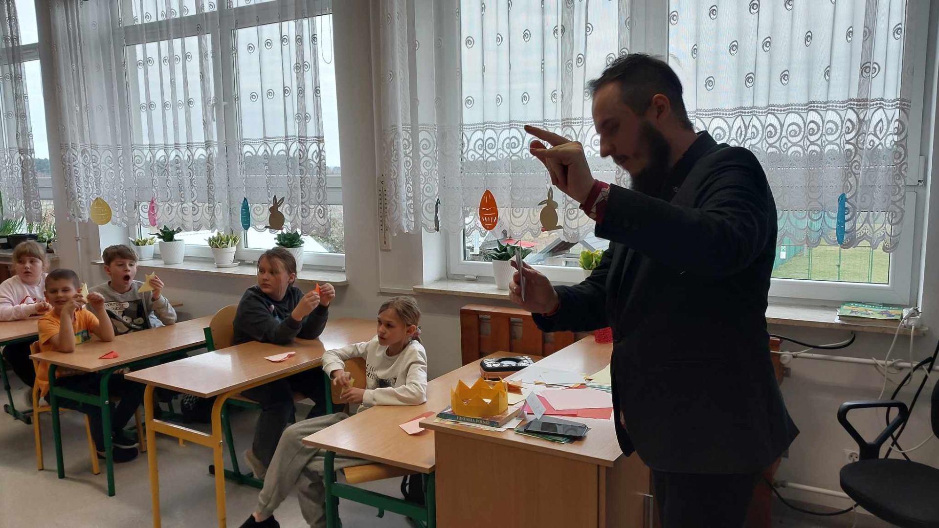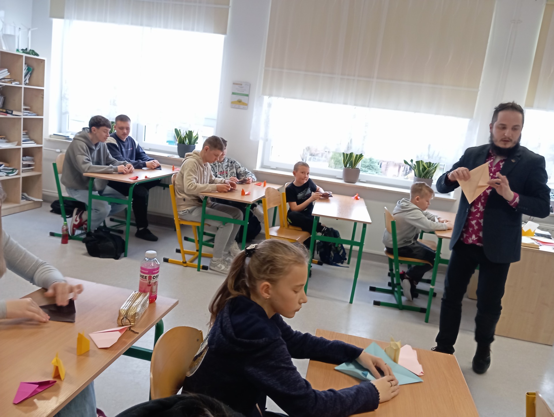 2 kwietnia 2025 r. w Szkole Podstawowej w Pasiekach odbyły się niezwykłe warsztaty origami, które poprowadził pan Dominik Kazuś – artysta działający pod marką Dorigami.pl.