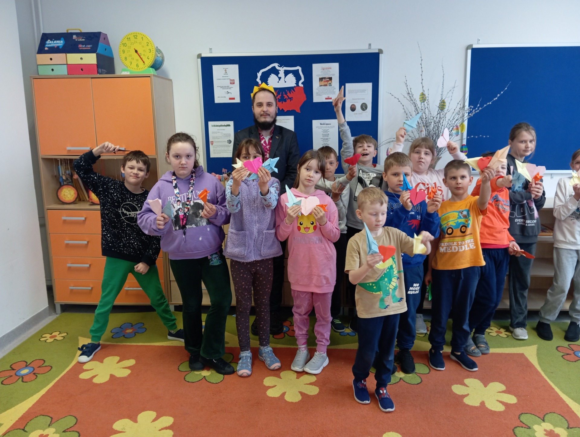 Zajęcia odbyły się według autorskiego scenariusza „Papierowy Chrobry”, łączącego historię z japońską sztuką składania papieru. Uczniowie mieli okazję poznać fascynujące fakty i ciekawostki z życia Bolesława Chrobrego, a dzięki origami historia ożyła w ich rękach!