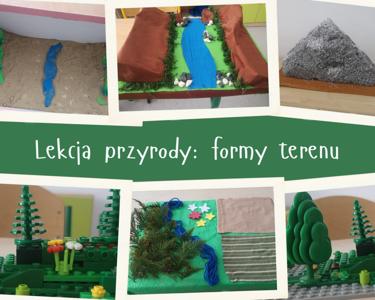 Na ostatniej lekcji przyrody uczniowie klasy 4 poznawali różne formy terenu, takie jak: góry, pagórki, doliny, niziny, wzgórza oraz kotliny.