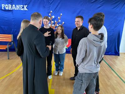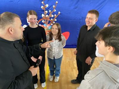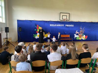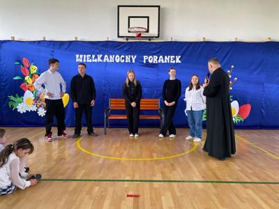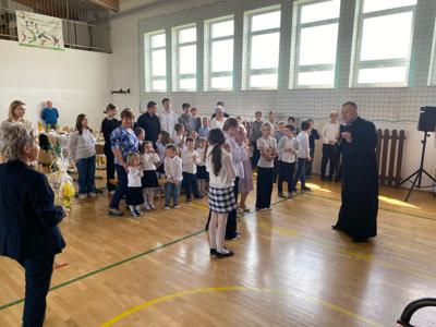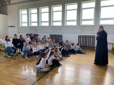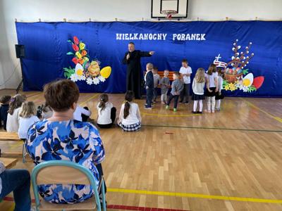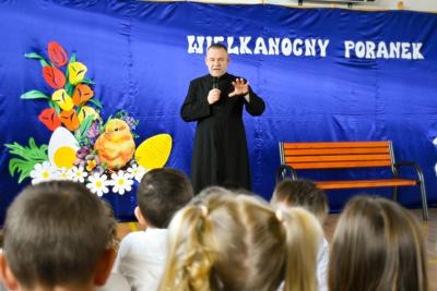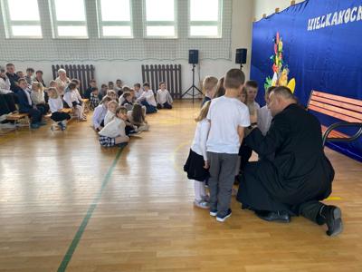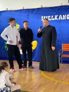 Tuż przed Świętami Wielkanocnymi przedszkolaki i uczniowie wzięli udział w wyjątkowej lekcji. W niezwykły sposób poznali tajemnice Drogi Krzyżowej, nie używając słów — poprzez gesty, mimikę i symboliczne działania, które przemawiały do ich wyobraźni i serc. To doświadczenie pozwoliło im poczuć głębię wydarzeń Wielkanocy, a także zanurzyć się w atmosferę pustego grobu i poranka Zmartwychwstania, które napełniły ich nadzieją i radością. Lekcję tę poprowadził proboszcz parafii świętego Józefa w Tomaszowie Lubelskim ks. Grzegorz Chabros, który z pasją i ciepłem opowiadał o tajemnicach tych świętych wydarzeń, angażując dzieci i młodzież w duchową podróż. Po zakończeniu duchowych przeżyć, wspólnie usiedliśmy przy wielkanocnym śniadaniu — oczywiście, nie mogło zabraknąć tradycyjnego białego barszczu, który od lat gości na naszych stołach. To był czas nie tylko smaku i wspólnoty, ale przede wszystkim refleksji nad tym, co najważniejsze w tych świętach — nad nadzieją, odrodzeniem i miłością, które odczuliśmy