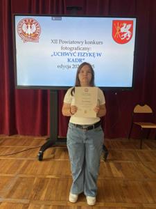 Wyróżnienie dla Anity w powiatowym konkursie "Uchwyć Fizykę w kadr"